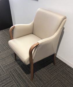 クリニック正面の西側と、リハ室の北側は全面ガラス窓です。暑いし寒いか?と思うけど、天井も高く開放的で通院が苦にならなそうな空間です。