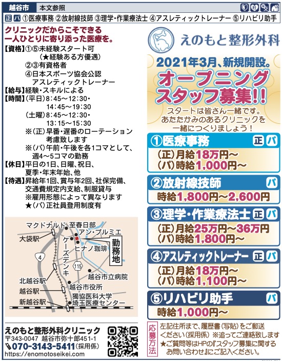 また、明日11月22日、新聞求人広告のアイデムに当院の職員募集広告を出すことになりました。